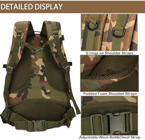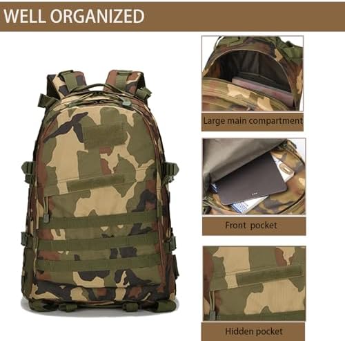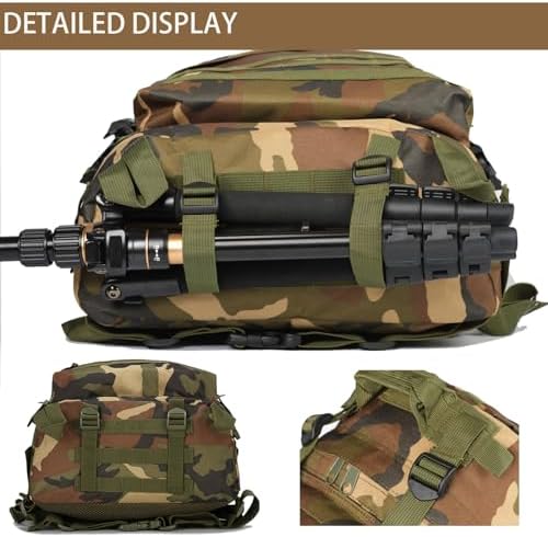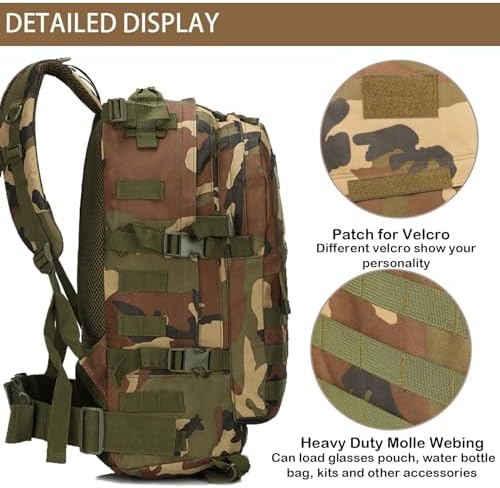 MOLLE BACKPACK:Webbing on front and sides,you can used in combination with other equipment,you can load glasses pouch, water bottle bag, kits and other accessories.Convenient for shopping, hiking, mountaineering, Outdoor travel.