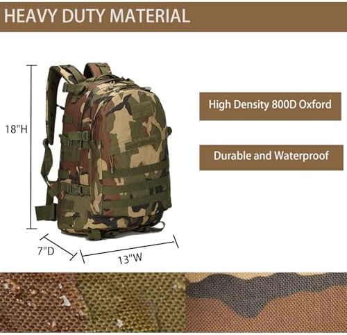 HEAVY DUTY MATERIAL:Dimensions: 13.0″W x 18.0″H x 7.0″D,Lightweight:1.98lb.This camo backpack for boys made of high density 800D Oxford outer,durable and waterproof. Zippers are solid and well stiched, very smooth to use.Designed with waist belt&chest strap, easy to fix the pack onto your body, no worries about the bag sliding down when riding a bike or climbing.