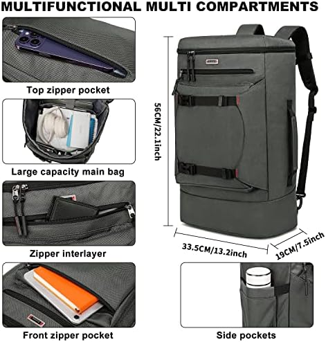 【Large Size and Capacity】:This travel backpack size is 21.6*14.1*7.8 inches, the storage capacity is not less than 40L. The backpack with a main compartment and a 17 inch laptop compartment, it has independent pockets inside, in which small items can be easily stored, make your items organized and easier to find, and the backpack can be fixed on the trunk rod or can be carried by hand.