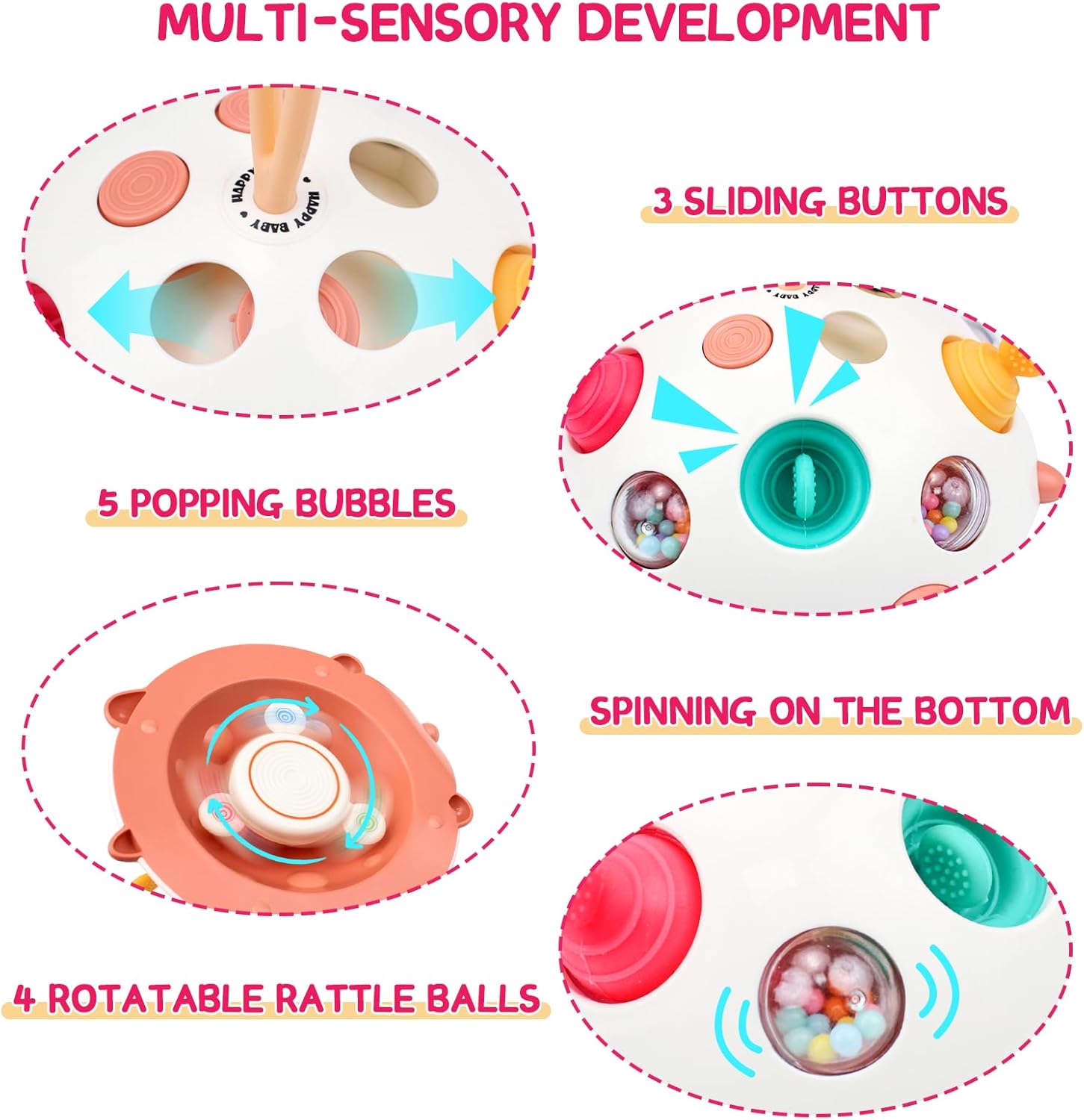 Fine Motor Skill Development: Equipped with 5 popping bubbles and 3 sliding buttons design, our montessori toy for babies 6-12 months encourages babies to hone their precision,dexterity and eye-hand coordination through play