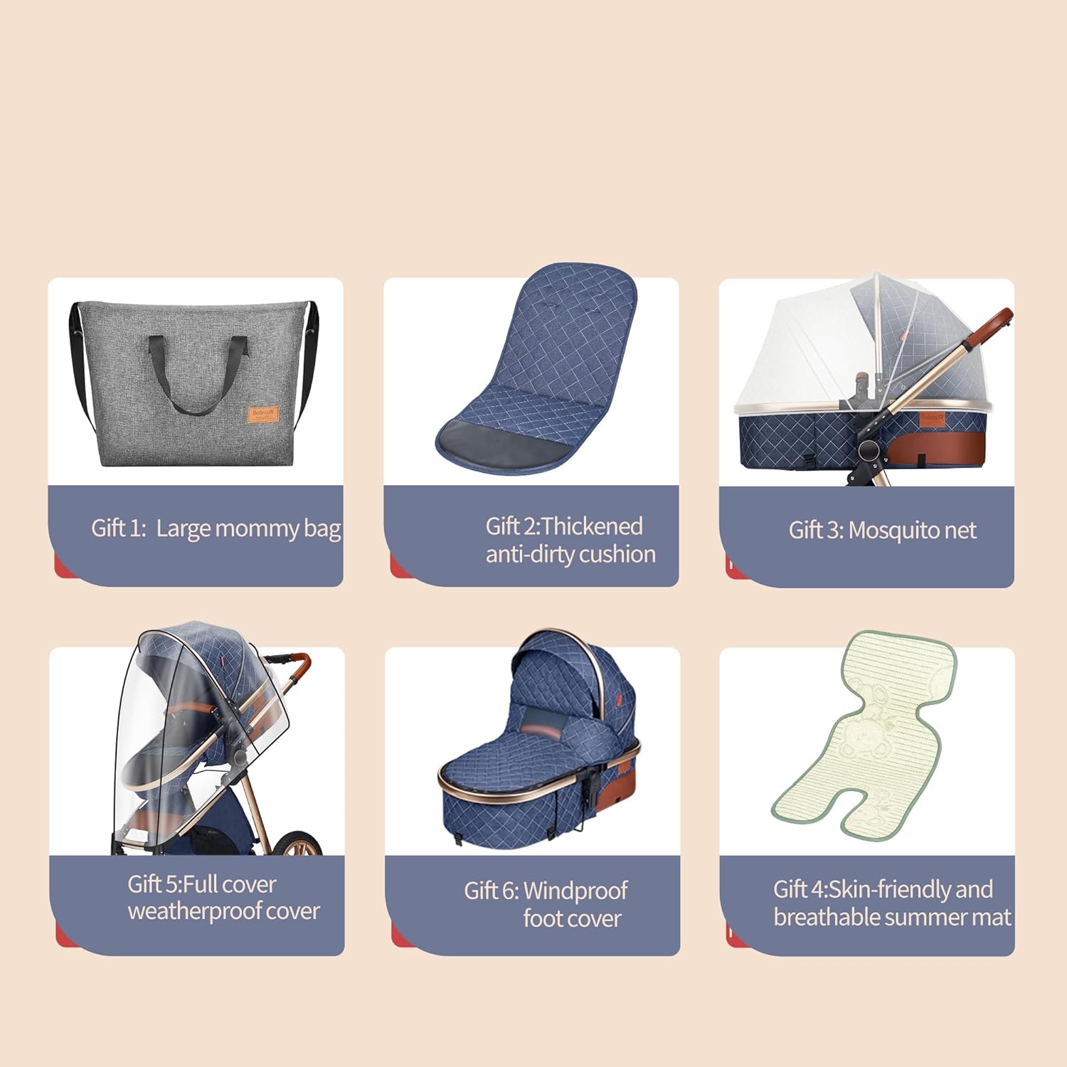 SIX GIFTS INCLUDED: Given sweet gifts to enhance convenient use— one diaper bag, one cushion, one mosquito net, one raincover, one full foot cover, one summer mat.