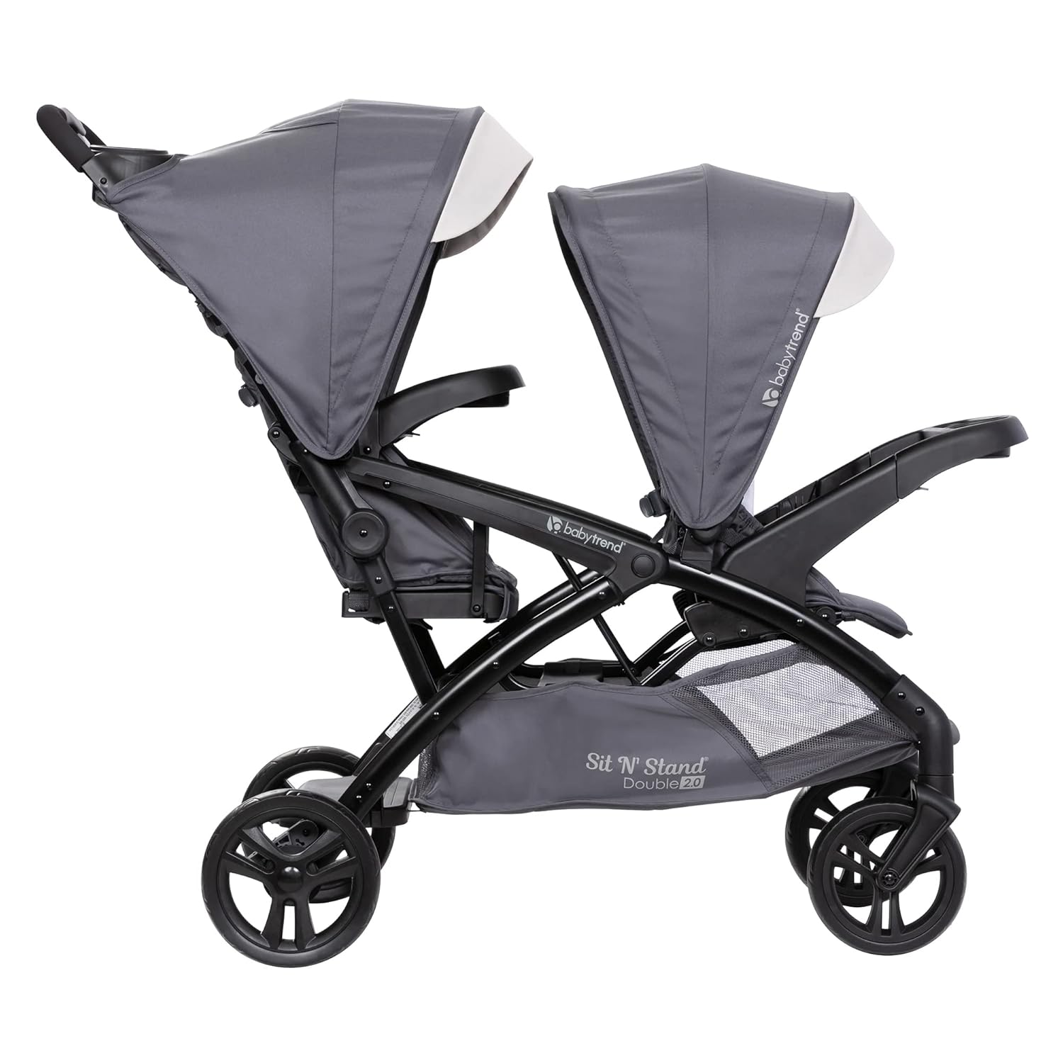 Double Stroller: Children can sit in the front and rear seats of the tandem stroller or stand on the rear platform; Compatible with BabyTrend car seats and supports up to 50 pounds