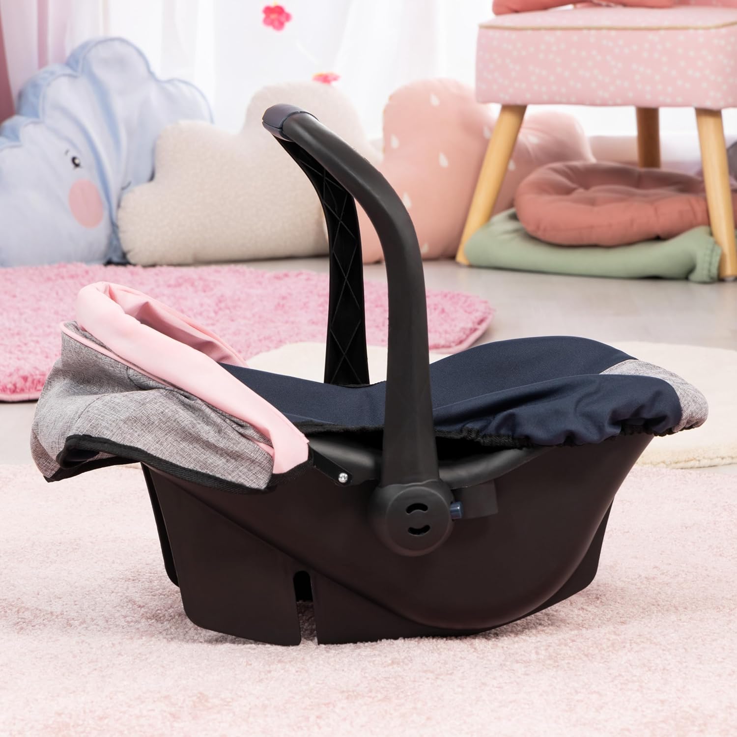 Bayer Design Dolls: Car Seat – Grey, Blue, Pink – This modern doll car seat has a very fashionable color. The beautiful car seat is suitable for dolls up to 46 cm / 18 inch. With its wonderful fabric and its integrated sunshade, the doll or plush toy sits comfortably and is protected from sun and wind in the face. The sun canopy is retractable and durable. Thanks to its integrated seat belt, the doll or the plush toy is secured from falling and has sweet dreams while travelling. The ergonomic handle is comfortable to carry, thus it is easy to carry the doll or the plush everywhere you want. The doll’s car seat can rock as soon as it is slightly pushed. It is also possible to mount the doll’s car seat on the Neo Vario doll’s pram (sold separately). Strap your doll in for a ride, a nap, or a place to sit for feeding time. Children can transport around their favorite stuffed animals, plush toy, and dolls in style. Encourages independent play and nurturing skills. Pretend play as mommy and daddy. Suitable for boys and girls ages 3 and up..