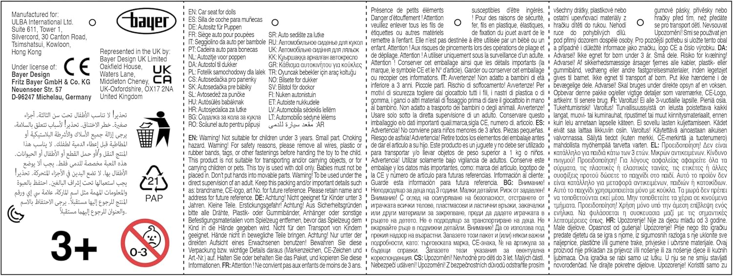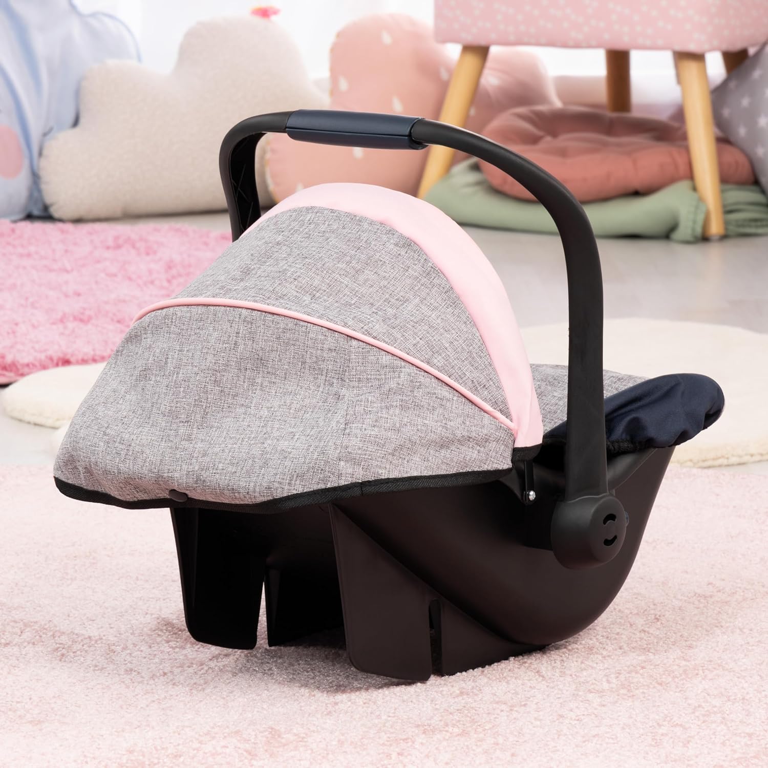 Bayer Design Dolls: Car Seat – Grey, Blue, Pink – This modern doll car seat has a very fashionable color. The beautiful car seat is suitable for dolls up to 46 cm / 18 inch. With its wonderful fabric and its integrated sunshade, the doll or plush toy sits comfortably and is protected from sun and wind in the face. The sun canopy is retractable and durable. Thanks to its integrated seat belt, the doll or the plush toy is secured from falling and has sweet dreams while travelling. The ergonomic handle is comfortable to carry, thus it is easy to carry the doll or the plush everywhere you want. The doll’s car seat can rock as soon as it is slightly pushed. It is also possible to mount the doll’s car seat on the Neo Vario doll’s pram (sold separately). Strap your doll in for a ride, a nap, or a place to sit for feeding time. Children can transport around their favorite stuffed animals, plush toy, and dolls in style. Encourages independent play and nurturing skills. Pretend play as mommy and daddy. Suitable for boys and girls ages 3 and up..