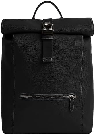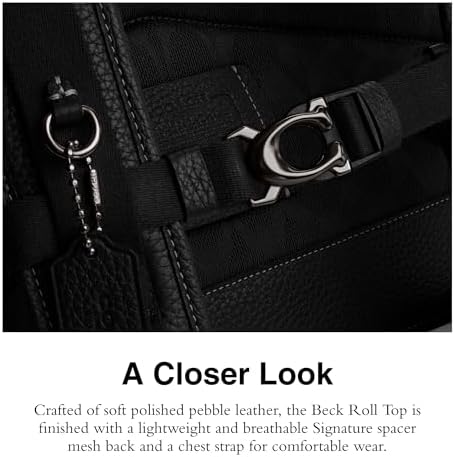 Editors Notes: Always on call, our Beck is a sophisticated sporty choice for every day. Crafted of soft polished pebble leather, this sleek roll top backpack with laptop sleeve has interior multifunction pockets and an outside zip pocket for easy organization