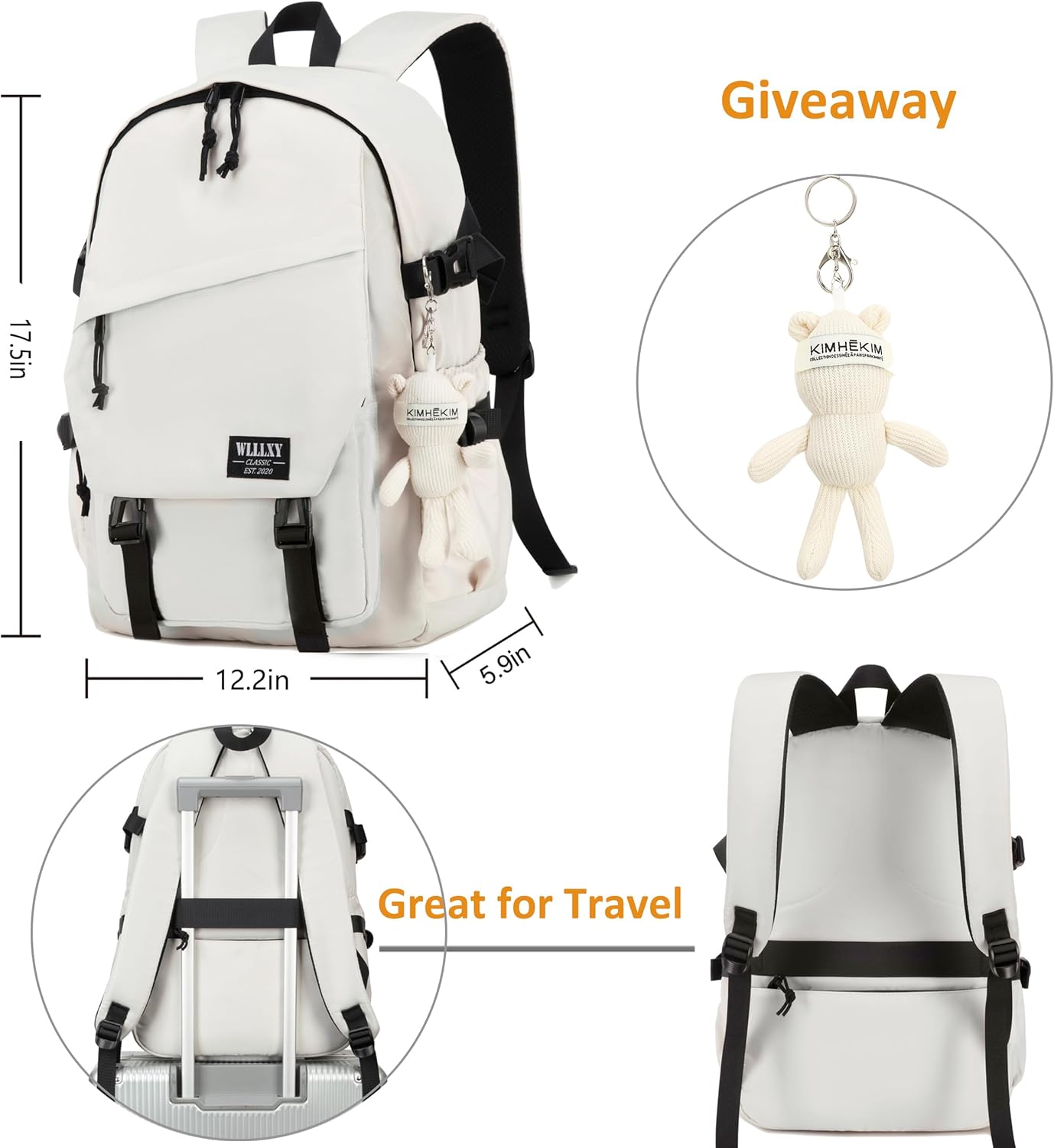 【Large Size & Gift】: The size of girls computer backpack is 12.2″x5.9″x17.5″(L*W*H), Weight:1.65LB. The laptops bag with padded compartment sleeve fit tablet from 14 to16 inch. This back pack also along with white bear plush doll key pendant as gift makes the schoolbag more fashionable and unique