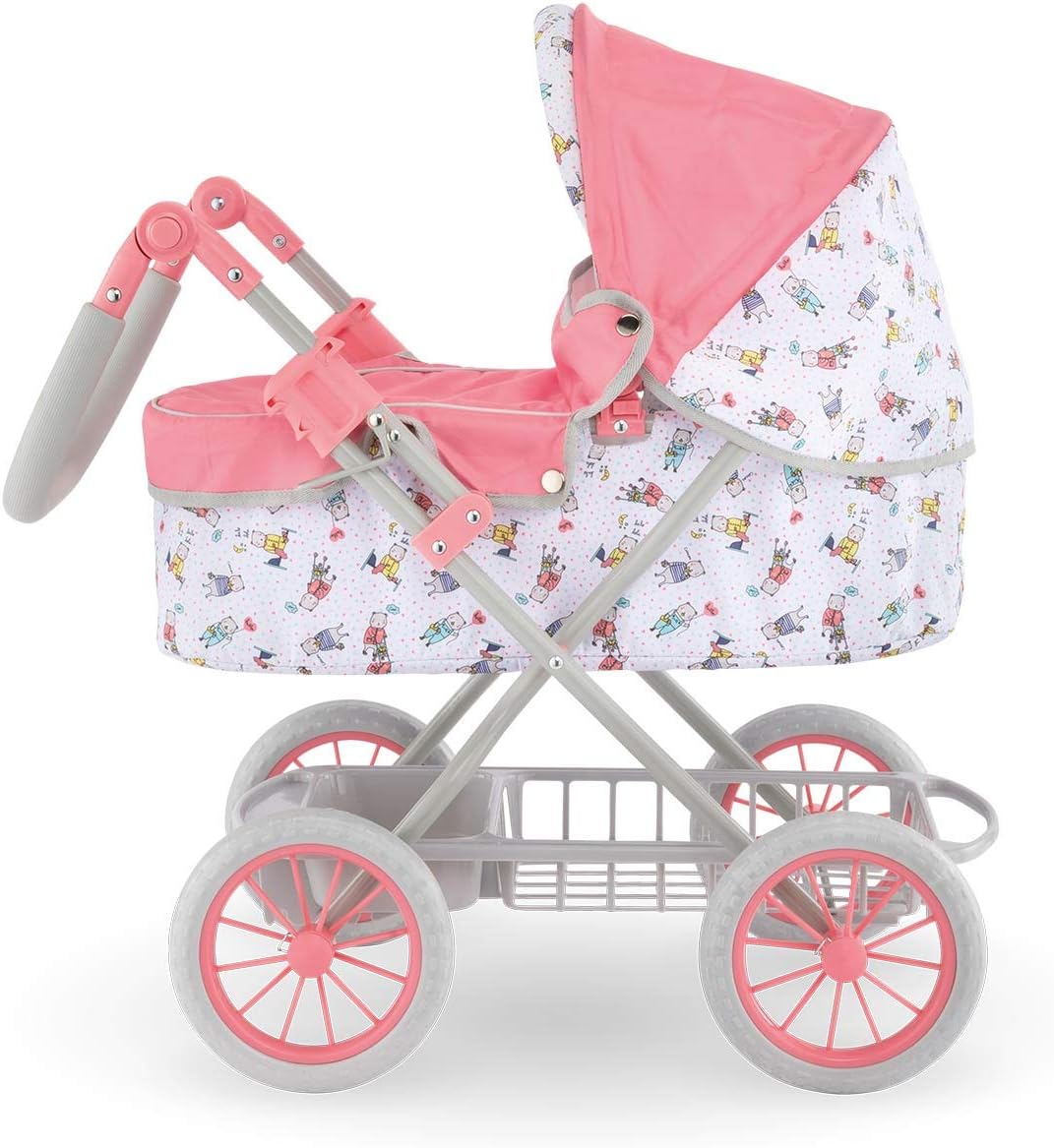 It’s time for a walk and make-believe moms and dads will love taking their favorite 14″ – 20″ Baby doll for a stroll in style. Its handle height is adjustable from 14″ To 29.5″ To accommodate children as they grow. It has an adjustable hood, A storage basket for baby’s things, a removable bassinet cover and comes complete with a matching nursery bag. When playtime is over, the carriage folds easily for space-efficient storage. It’s part of the Mon grand poupon Corolle collection of dolls, fashions and accessories to help little ones take care of their baby doll the way their parents take care of them. Ages 3 years and up. 27.5″L x 27.5″H x 15.75″W