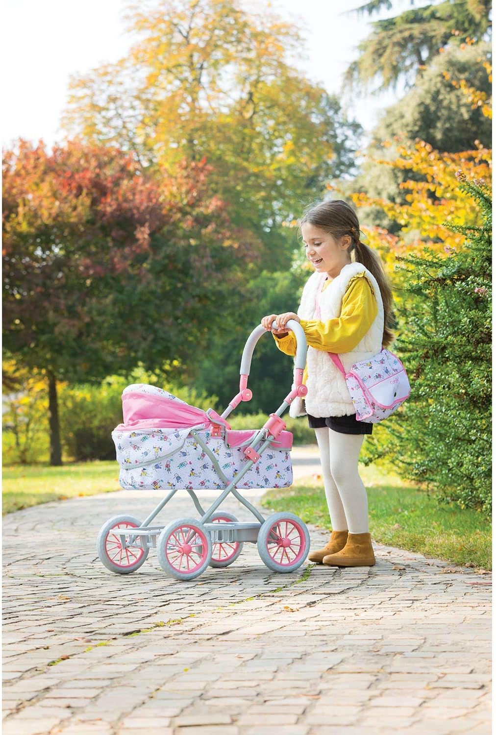 It’s time for a walk and make-believe moms and dads will love taking their favorite 14″ – 20″ Baby doll for a stroll in style. Its handle height is adjustable from 14″ To 29.5″ To accommodate children as they grow. It has an adjustable hood, A storage basket for baby’s things, a removable bassinet cover and comes complete with a matching nursery bag. When playtime is over, the carriage folds easily for space-efficient storage. It’s part of the Mon grand poupon Corolle collection of dolls, fashions and accessories to help little ones take care of their baby doll the way their parents take care of them. Ages 3 years and up. 27.5″L x 27.5″H x 15.75″W