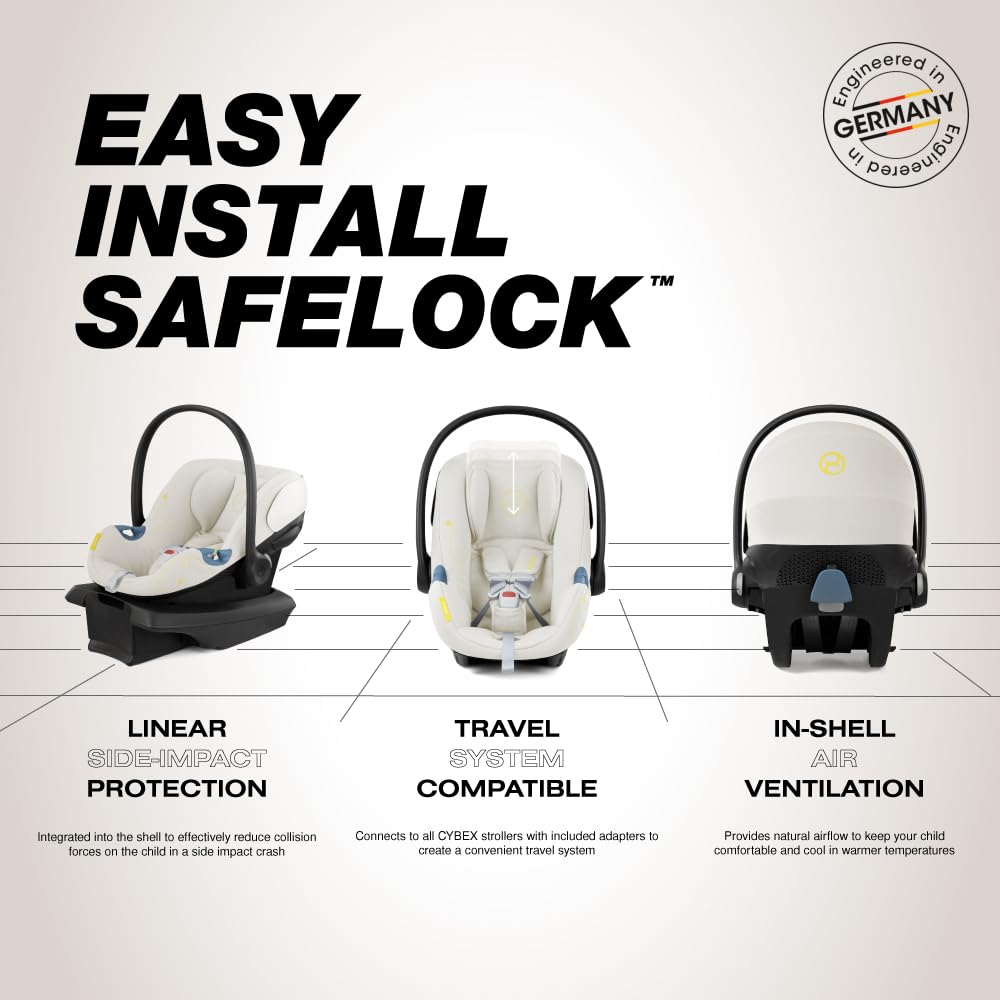 At 9 lbs., the CYBEX Aton G is one of the lightest infant car seats on the market. The Aton G takes safety and comfort seriously with the use of linear side-impact protection, which reduces collision forces in a side impact crash, in-shell air ventilation for natural airflow and a UPF50+ sun canopy. Additionally, the SAFELOCK belt tensioner provides a quick and easy installation.