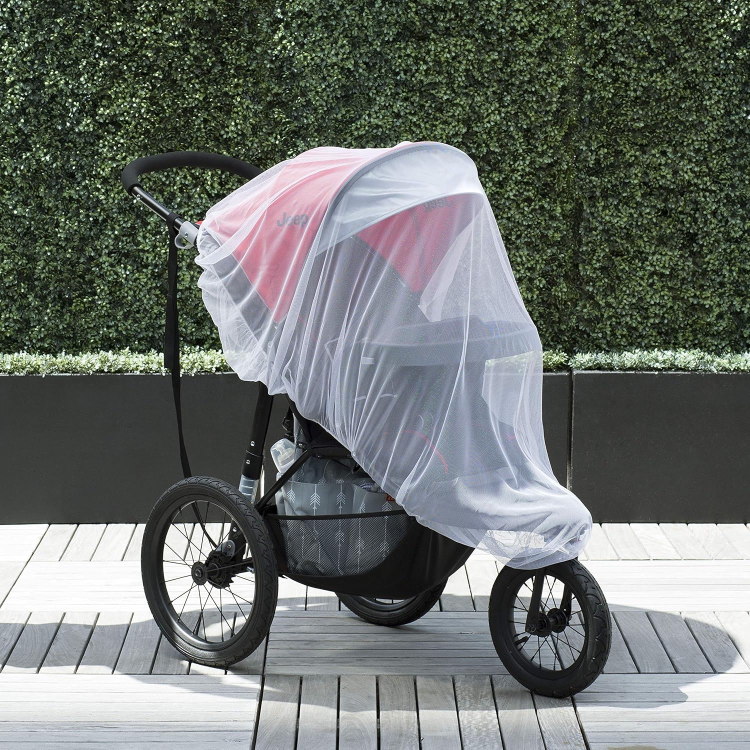 Easily protect your baby at home or on the go with this 2-Pack of Universal Mosquito Nets from Delta Children. The larger mosquito net is designed to fit most strollers, joggers, play yards, playpens or Pack ‘n Plays while the smaller mosquito net will create a snug fit on most infant cars seats, infant carriage strollers and bassinets. Constructed from super fine mesh, these nets offer a simple solution that keeps mosquitos, no-see-ums, ticks, other bugs or family pets out and allows fresh air in. Elastic edges around the nets hold them in place while also making them extremely easy to remove.