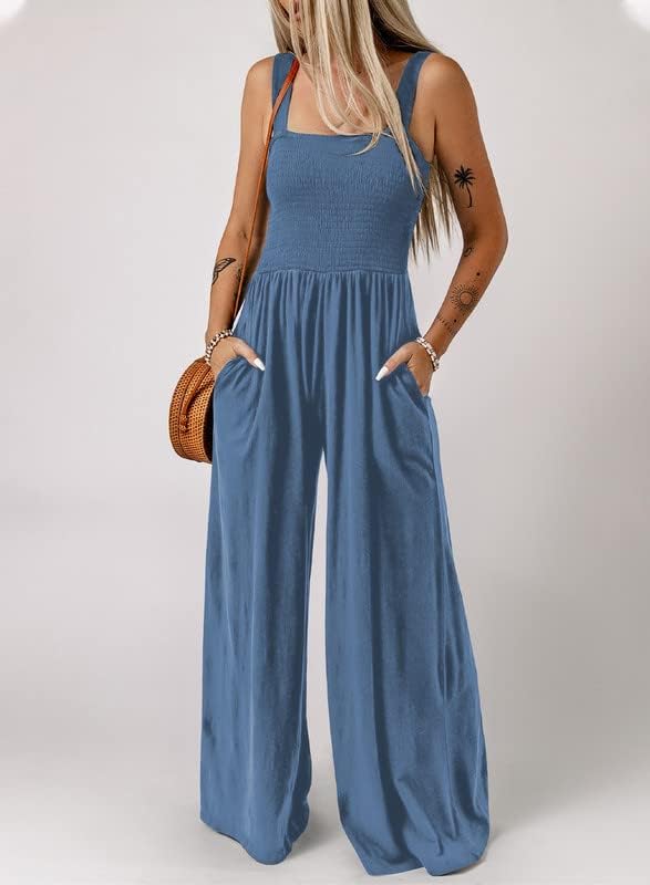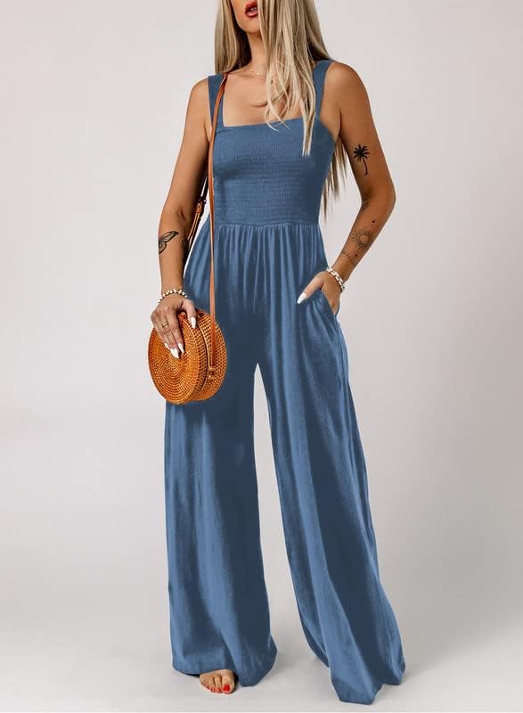 Dokotoo Womens Overalls Loose Fit Wide Leg One Piece Sleeveless Jumpsuit Rompers