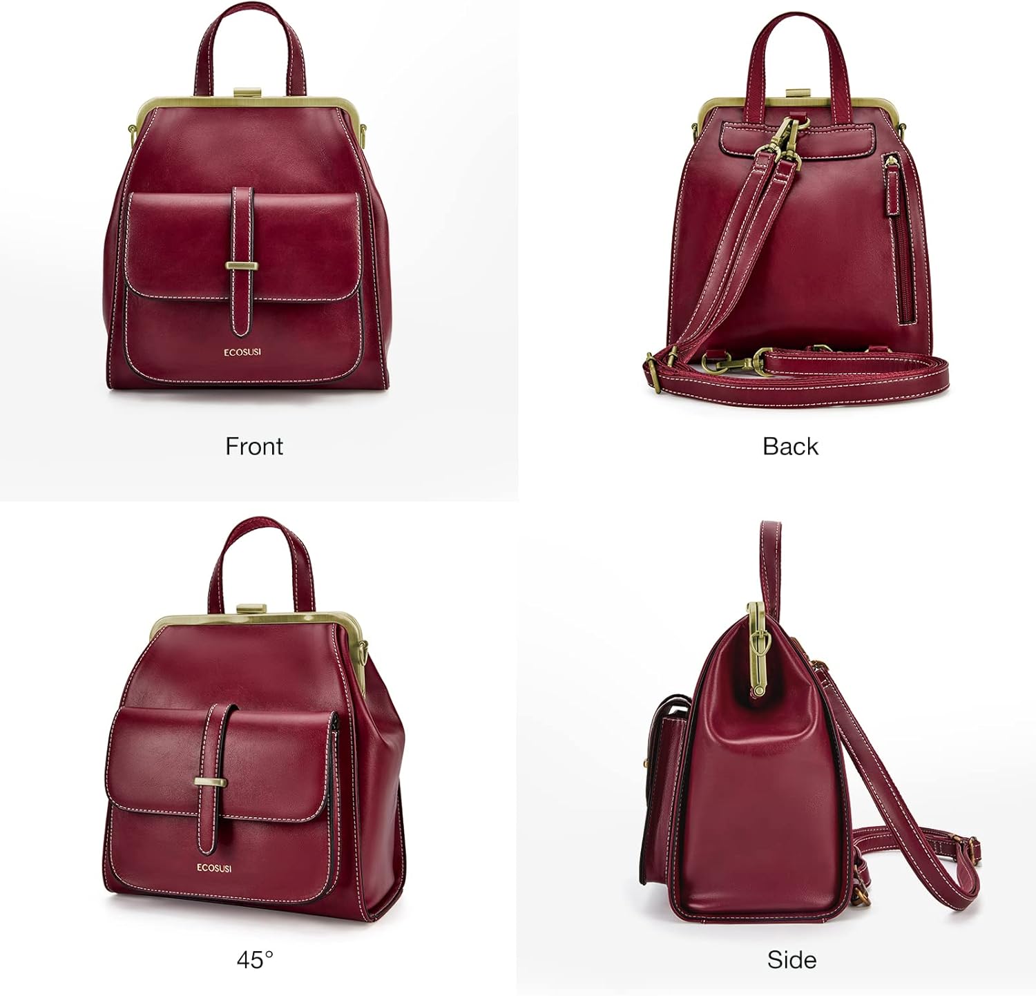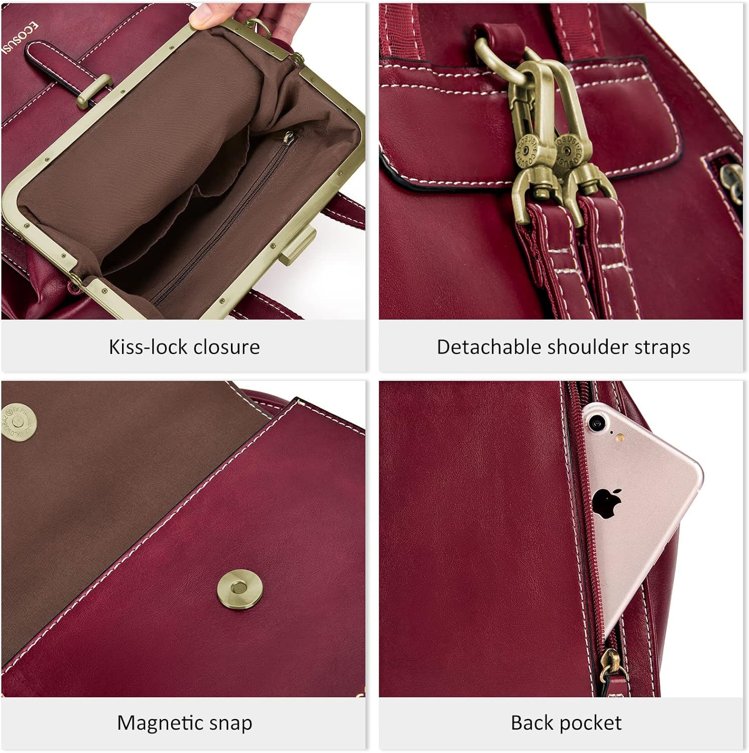 【Secure Fastening】The leather bag applies vintage kiss-lock closure in brass metal accent for quick access and make this bag special