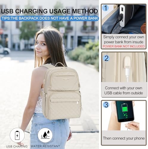 【Durable and Stylish Women Backpack】: Empsign laptop work backpack is made of high-quality quilted canvas and durable leather, with waterproof and wear-resistant advantages. The exterior of the backpack adopts quilting technology, high-quality metal lock, and USB interface design, conveying a classic and fashionable appearance and feeling. The stable bottom of the backpack can better carry the backpack.