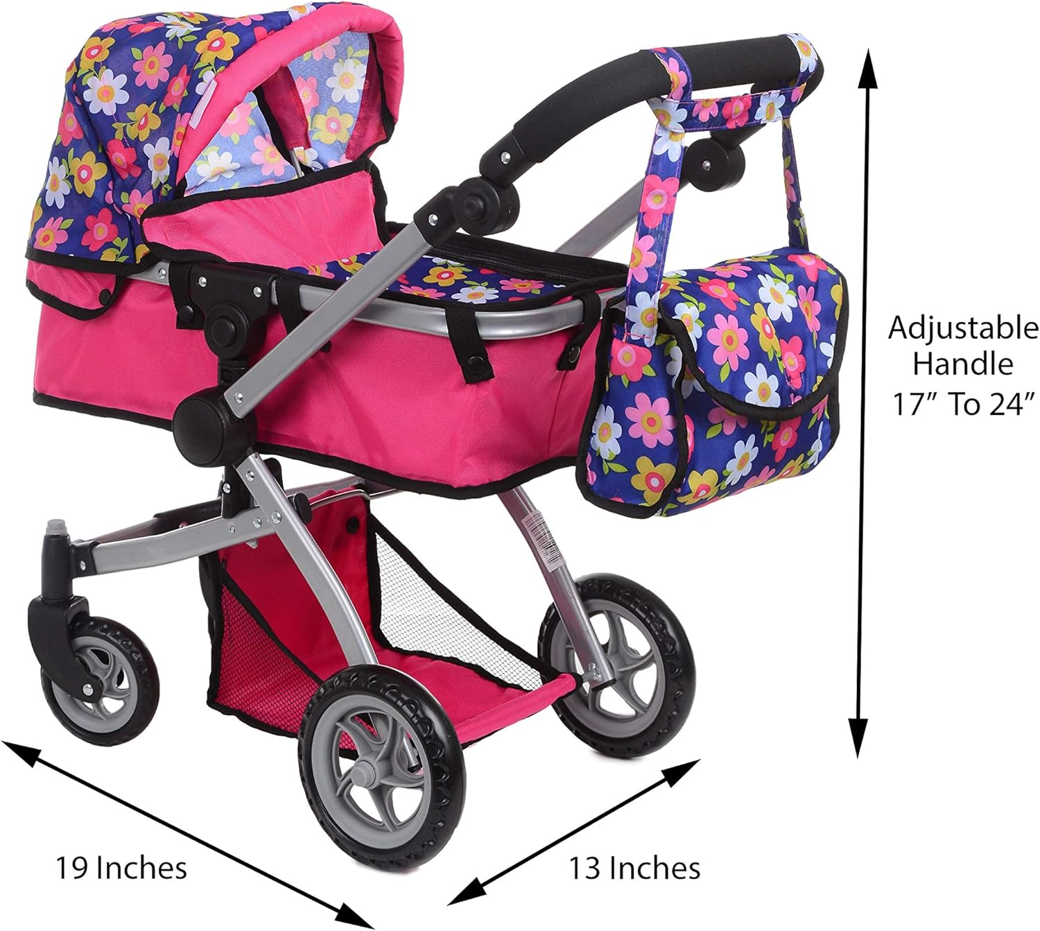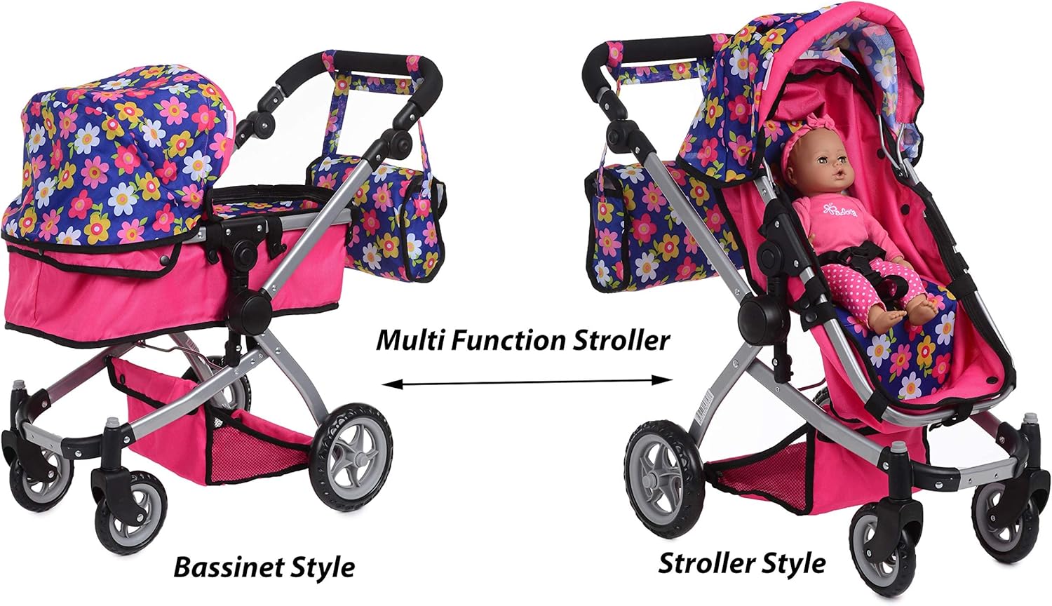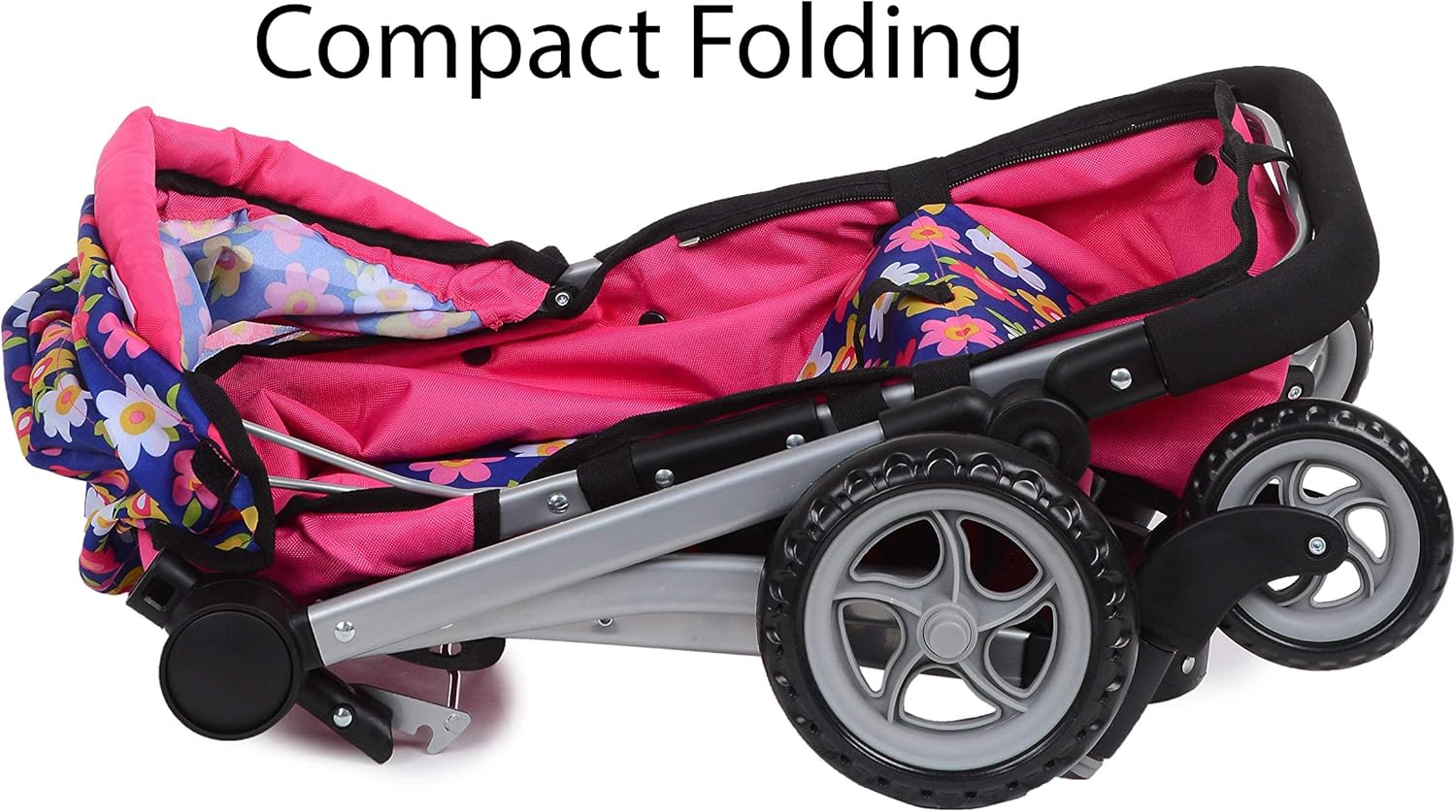 VERSATILE FEATURES: This Baby Toy Doll Stroller hold up to 18″ inches in height a Doll and boasts a cushioned bed for your child’s doll Our baby doll stroller comes with swiveling wheels for easy maneuverability and an “Soft Grib” adjustable handle to suit your child’s height. The convertible seat can transform into a bassinet, offering various play scenarios 2-in-1 Convertible Doll Luxury Stroller + Bassinet – Realistic Fully Functional Reversible Deluxe Doll Coach Carriage.