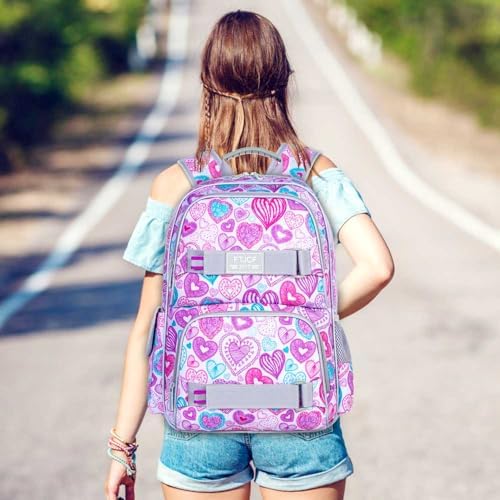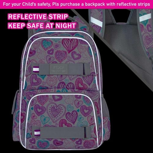 Unique backpack for girls: The stylish love heart print is paired with multi-point reflective strip design for added safety, double front buckle can hang hats or small items to make you look unique.