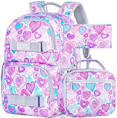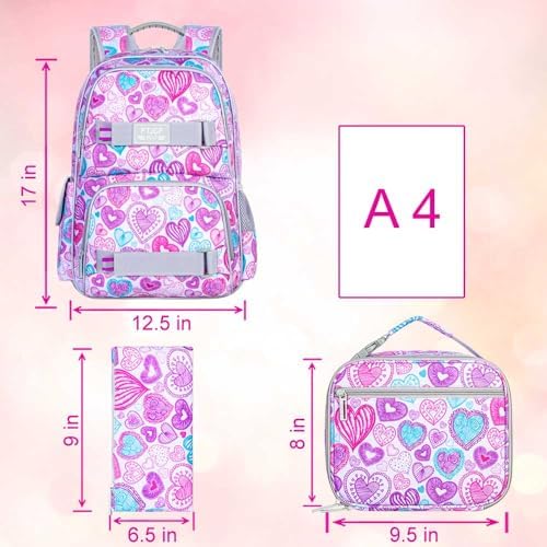 Laptop Backpack Set: Three pieces design, includes a backpacks for girls (17*13*6 Inches), a hangable lunch box (10*8*3.5 Inches), and a pencil bag, reasonable matching design to meet daily needs