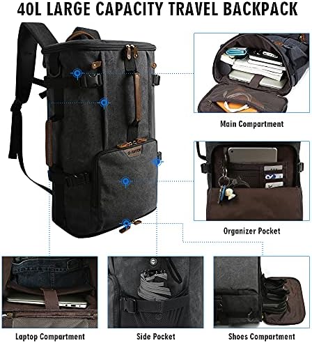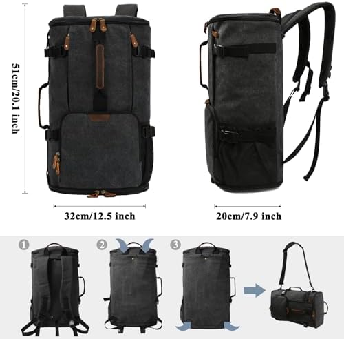 ★DURABLE MATERIAL & SOLID. Made of high quality canvas, leather handle and durable lining, durable metal zippers and buckles. Ensure a secure, long-lasting usage. Serve you well as professional carry backpack, can used as work bag, college backpack, overnight weekender bag, travel bag. Perfect for hiking, weekend trip, airline flight, outdoor, and camping.