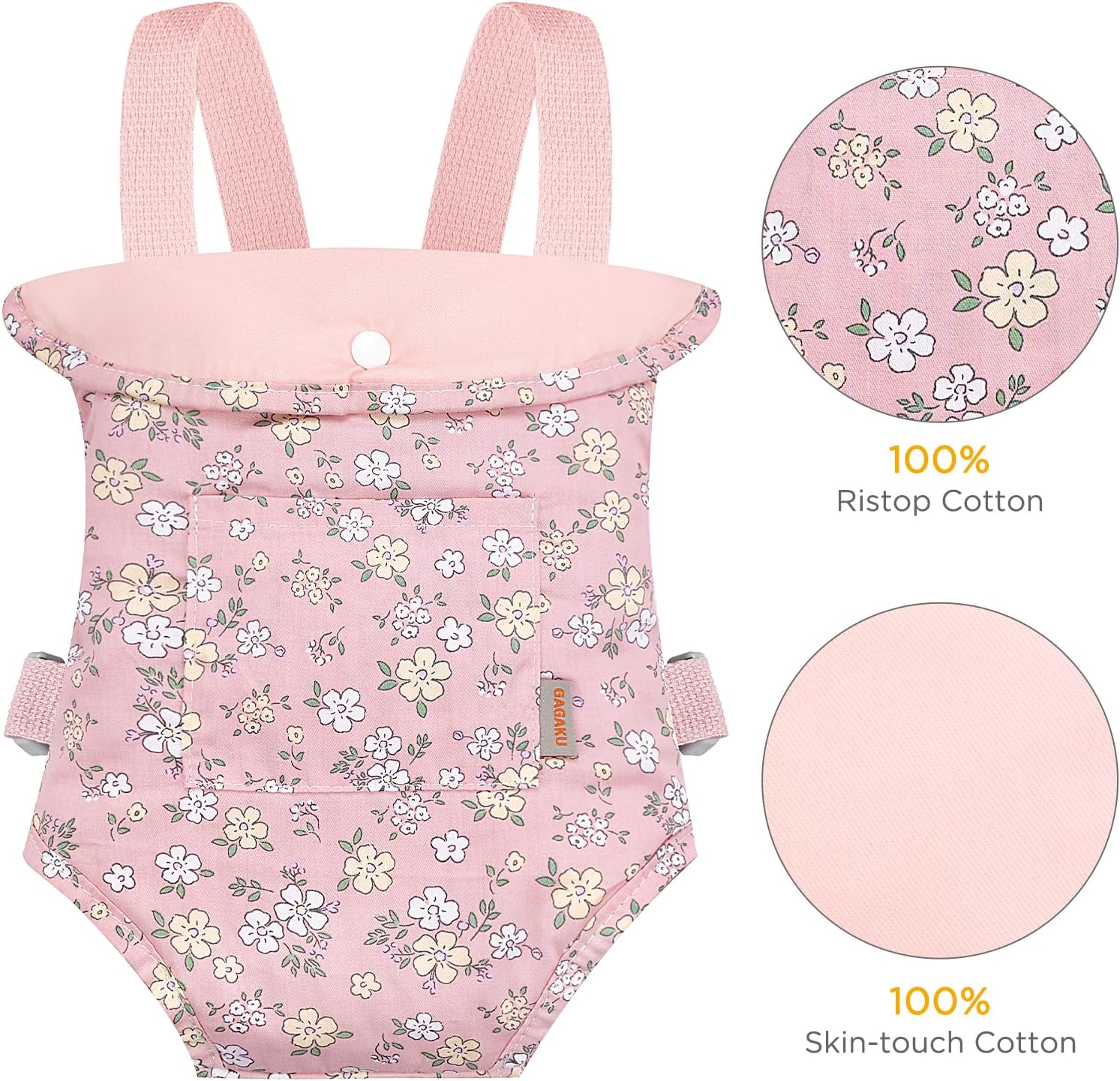 [100% Cotton] This well-made doll carrier adopts 100% cotton material. Lightweight, soft and breathable, it is safe and comfortable for little kids;
