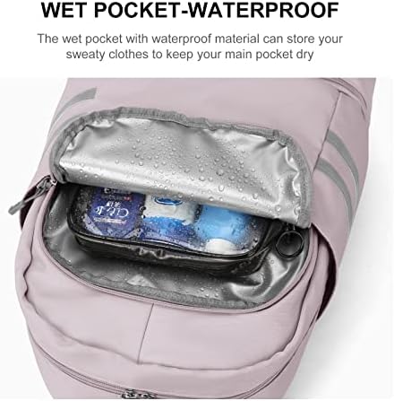 Wet Pocket &Shoes Compartment : The gym backpack for women features a fully waterproof wet pocket can help you to separate wet clothes or towel after traveling,swimming or exercising.And there is an upgraded design,a separated compartment on the bottom for shoes, dirty gear storage.