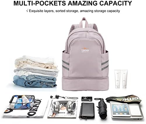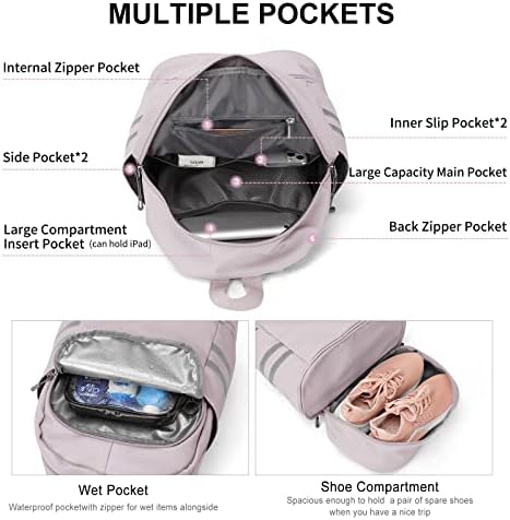 Multi-purpose women backpack:This travel backpack capacity is huge, so you use it as a travel backpack.The design of shoe compartment and wet pocket makes the backpack can be as a sports backpack, swimming backpack,hiking backpack, gym bag. It is also a good choice as a daily backpack.