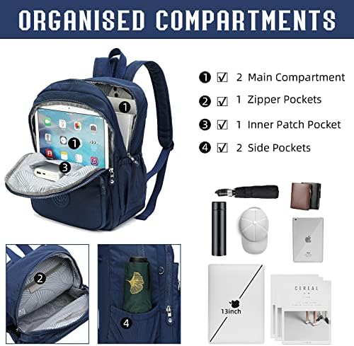 【ORGANIZED DESIGN】It features various external and internal compartments, pockets, very convenient to keep your daily items organized, as well as easy access to them. The seperate rooms make the backpack fit all of the stuff you need, such as tablet, up to 13″ laptop, books, clothes, snacks or even lunch box, etc.