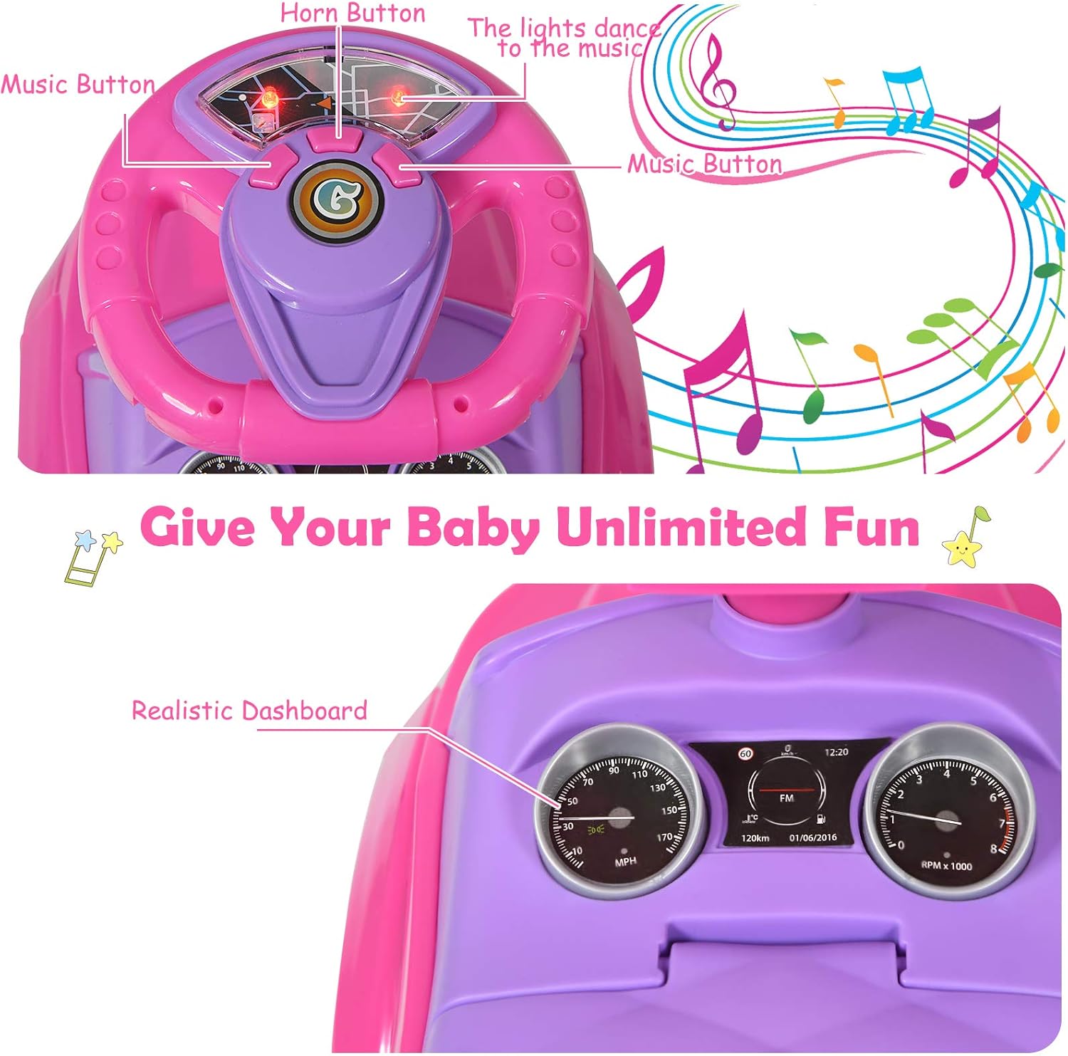 【Music Functions for Joyful Driving】Designed with a rotatable steering wheel with a music button, a horn button, and your lovely child can press the button and the effect of the light will dance to the music, adding more fun to their riding. The wide seat and soft backrest adopt ergonomic design to provide toddlers with a comfortable sitting feeling.