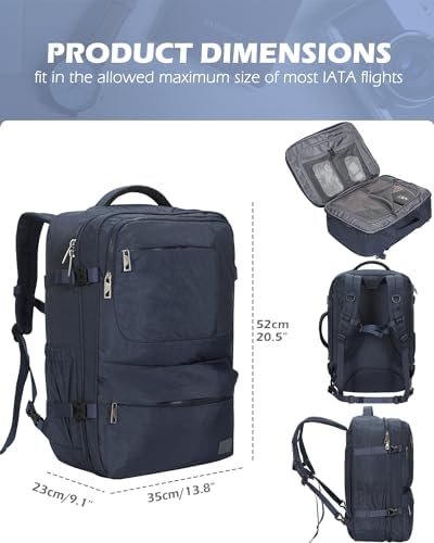 【Flight Approved Size】busines travel backpack for women made of water repellent 420D nylon and 230D polyester lining, airport carry on backpack which can fit in the allowed maximum size of most IATA flights and also fit in the overhead compartment, 44L carry on backpack for airplanes Approx. Dimensions: 20.5 x 13.8 x 9.1 inches/ 52 x 35 x 23 cm; Approx. Weight: 2.97 lbs/ 1.35 kg