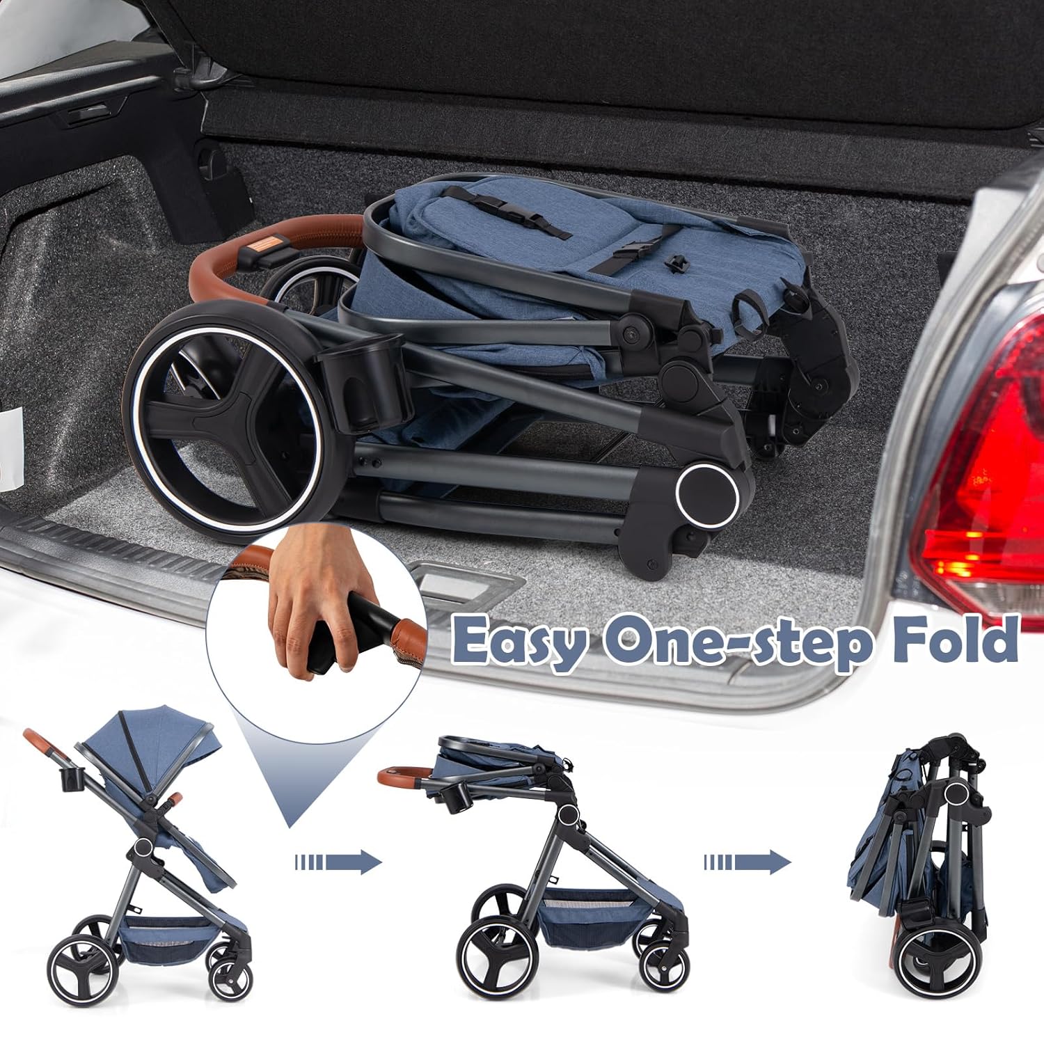 All Terrain Carriage Stroller: This high landscape baby stroller has shockproof wheels and excellent shock absorbent springs for smooth riding on all kinds of roads. The front wheels can rotate 360° or lock one-way. The one-touch brake allows you to quickly brake the two rear wheels. In addition, the one-click pickup design helps you fold the cart quickly. It is also very convenient to store.