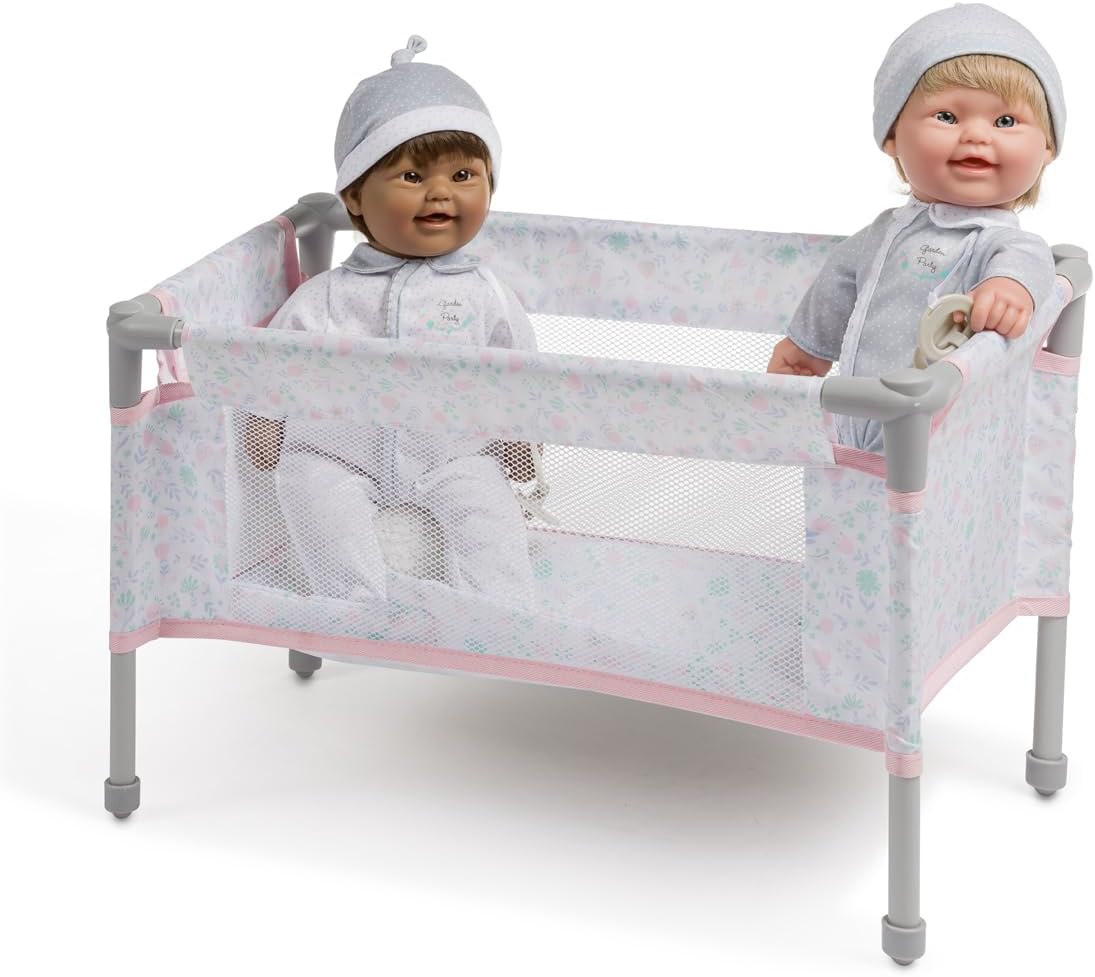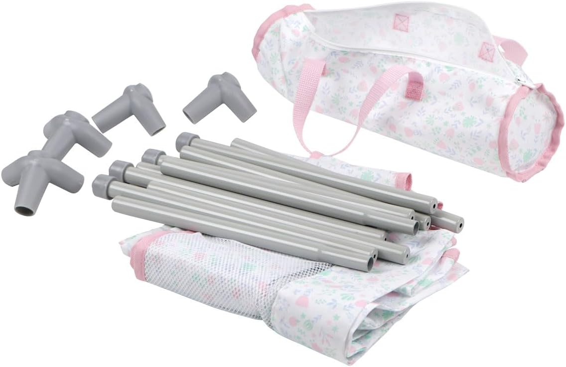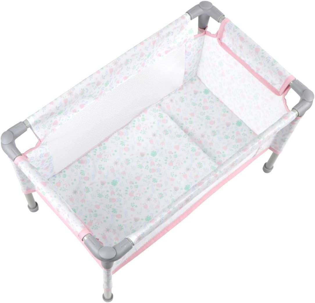 JC Toys – Berenguer Boutique | Travel Folding Crib – Playpen with Accessories | Pink Floral Collection | for Dolls up to 18″ | Ages 3+