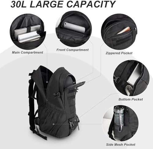 ✅ STABLE STRAPS: The chest and waist straps with fasten buckles make it easy for you to buckle the straps in seconds to stable the trekking backpack. The buckle strap on both sides and the 2 compression fasten buckle straps on the bottom enhance the army backpack’s stability when moving.