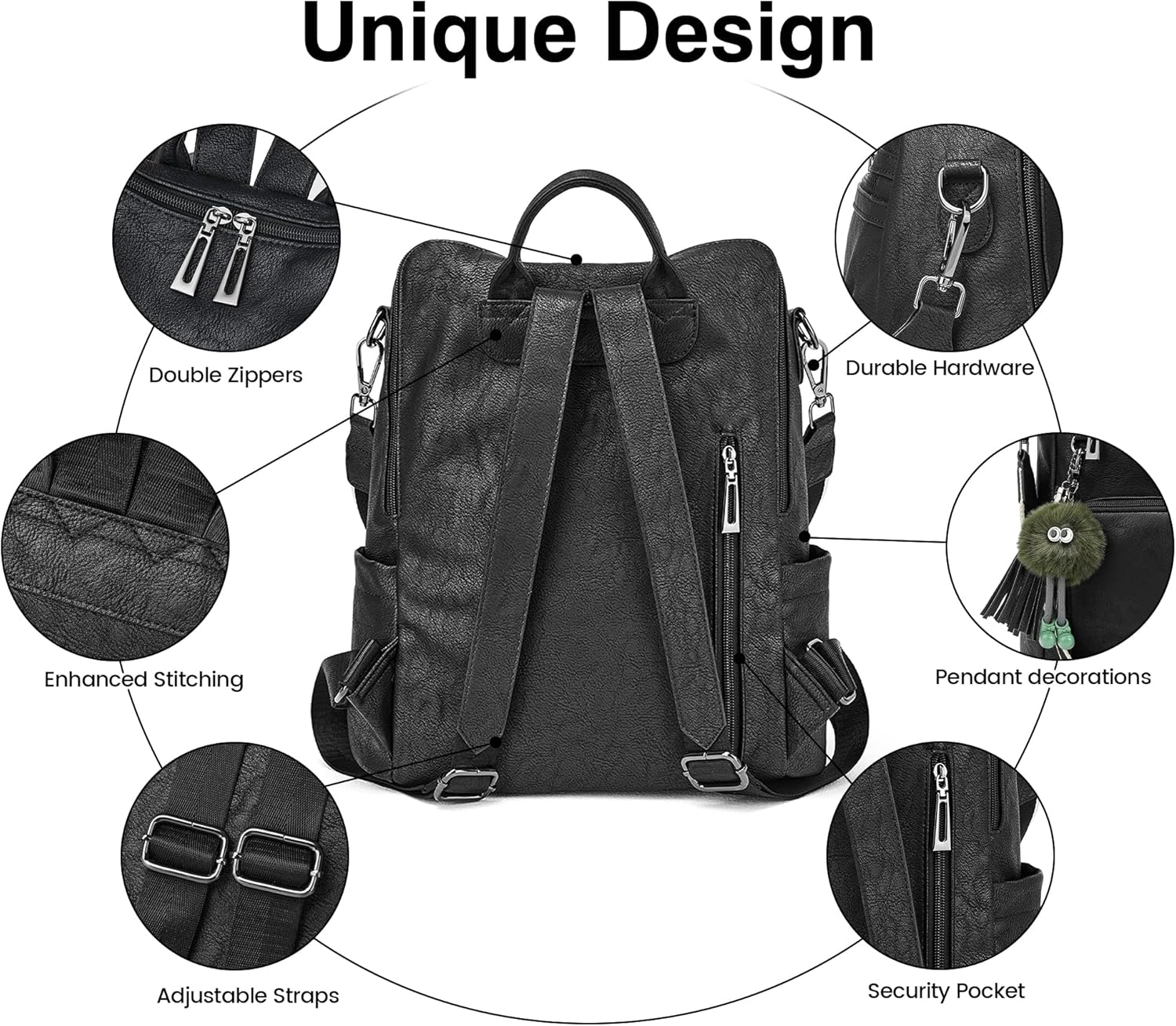 LARGE CAPACITY: The main pocket features a double zipper design for easy access, and there are two pockets on the front, two on each side, one inner zipper pocket, and two interior open pockets, providing ample space for storing all your essentials. The travel backpack also includes a security pocket on the back for storing valuable items. The adjustable and non-slip shoulder straps make this backpack purse comfortable to wear for extended periods.