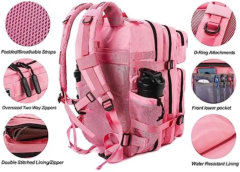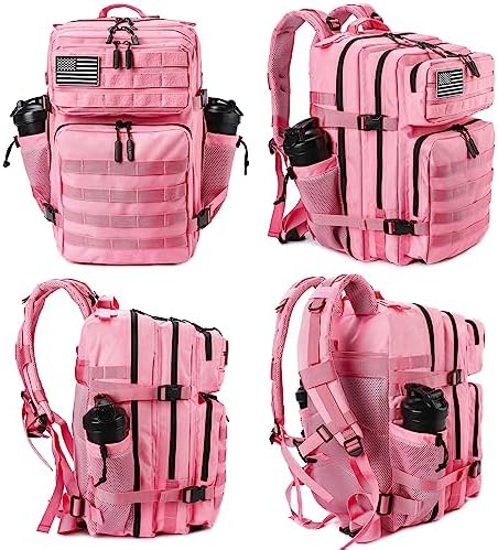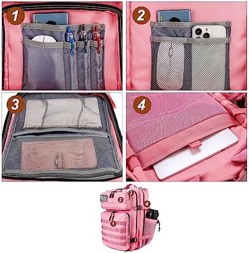 4. This tactical backpack has multiple compartments and zip closure pockets, including interior zip pockets and mesh pockets, bottle holder on the side holds 750ml water bottles, it allows you to put almost all necessities inside, perfect for outdoor activities and military hobbies also cool for fashion lovers!