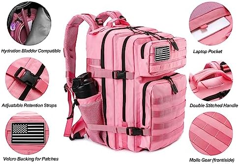 4. This tactical backpack has multiple compartments and zip closure pockets, including interior zip pockets and mesh pockets, bottle holder on the side holds 750ml water bottles, it allows you to put almost all necessities inside, perfect for outdoor activities and military hobbies also cool for fashion lovers!