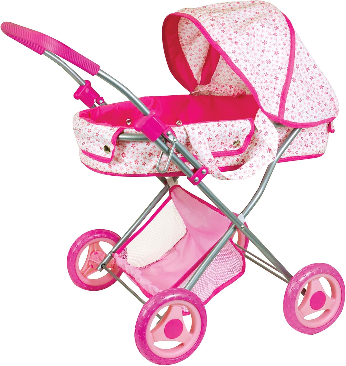 Lissi Dolls Pram Set – The modern, on-the-go four-wheel kids pram comes equipped with a pull-over hood, handy bag with accessories and removable cot. It also has udeful storage space underneath. The elegant contrasting colors makes it stand out from other doll prams. Let your little one play for hours while letting their imagination create scenarios. The dolls pram is also a great way to teach your little one about responsibility