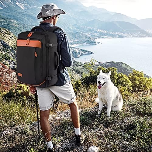 [LARGECAPACITY EXPANDABLE ]45L travel backpack expandable, can hold the necessary items for 3~7 days of travel, can accommodate three or four sets of clothes, shoes(Comes with a separate shoe bag), and Other daily necessities. The computer compartment can hold a 17-inch laptop. The capacity before expansion is about 35L, and it is 45+L after expansion. It is an ideal travel backpack for men and women