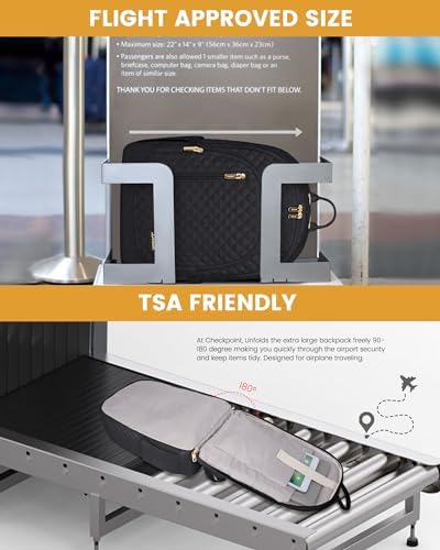 ✈️【Airline Approved & TSA Friendly】: Our travel backpack meets airline regulations, putting in overhead compartments and under seats. The backpack for traveling features a lay-flat laptop compartment exclusively designed for airplane travel. At the Checkpoint, the laptop travel backpack freely at 90-180 degree, and the laptop stays flat without being it from the bag, making it get through the airport security checkpoint more easily.