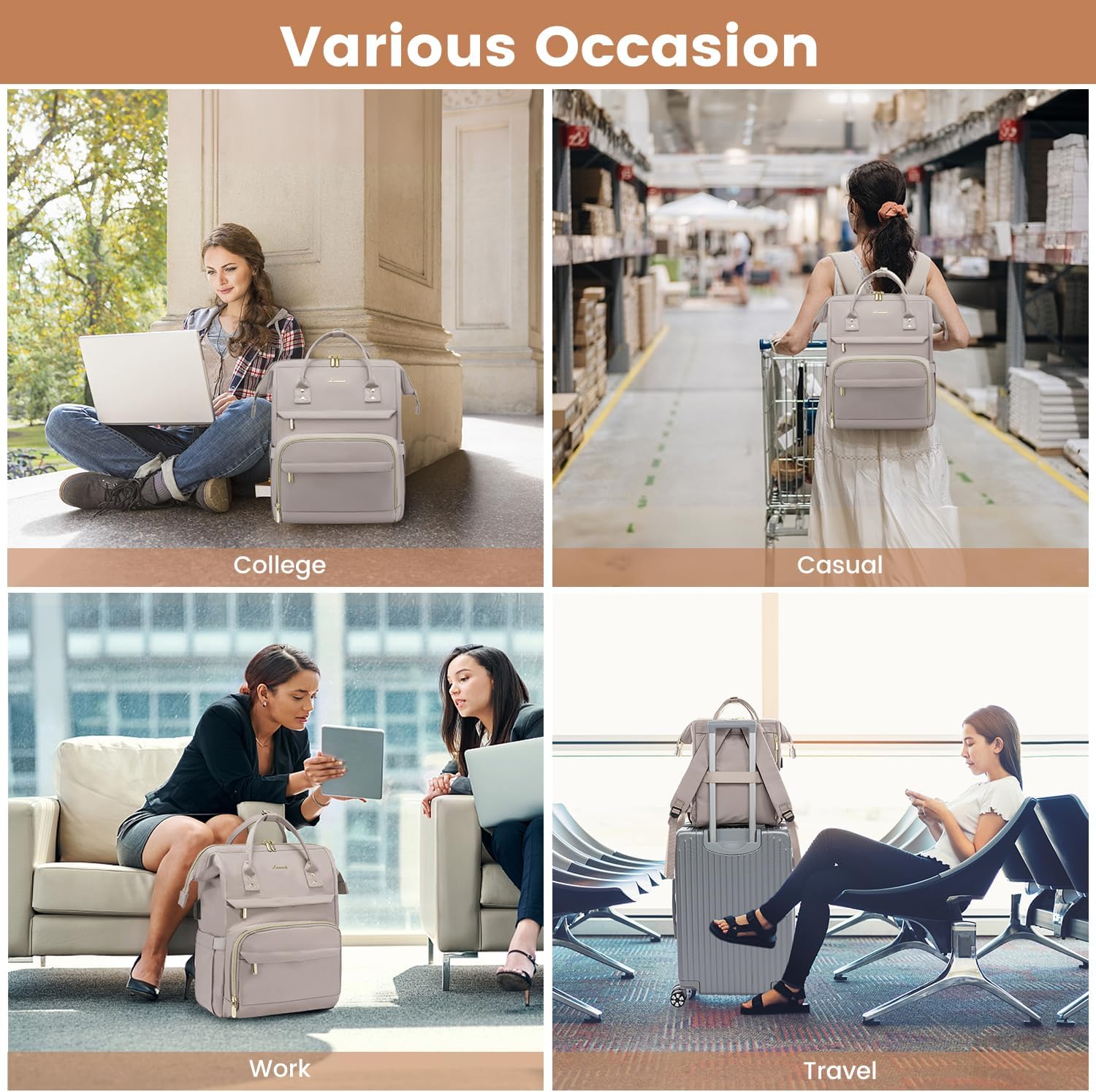 ✅【Carry in Comfort】:Adjustable and breathable padded wide shoulder straps release your pressure on back and shoulder. A luggage strap allows laptop backpack for women fit on luggage/suitcase, making your journey and travelling more convenient wherever you go
