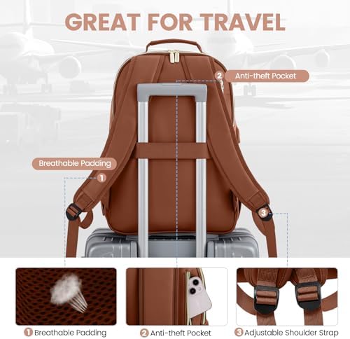 【Padded Leather Laptop Backpack Women】: The dedicated separate laptop compartment with cushioned cotton sewn around fits up to 17.3″ laptop,come with a elastic strap can offer the optimal protection for your laptop. Tablet slot fits 13.3″ laptop, 12.9″ iPad. Great idea for someone with multiple electronic devices.