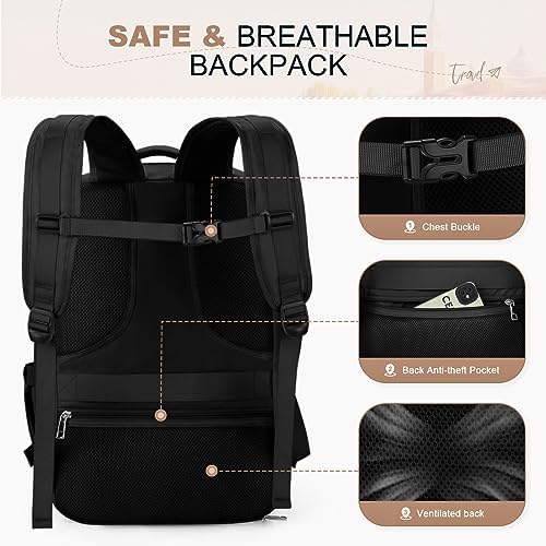 Convenient Travel Features: Enjoy hands-free transportation with the luggage belt that securely attaches the backpack to your carry-on luggage. This lightweight carry on backpack is designed for easy travel and also includes a back anti-theft pocket to keep your valuables safe and secure.The elasticated side pocket of this versatile backpack securely holds water bottles, umbrellas, and other travel essentials.