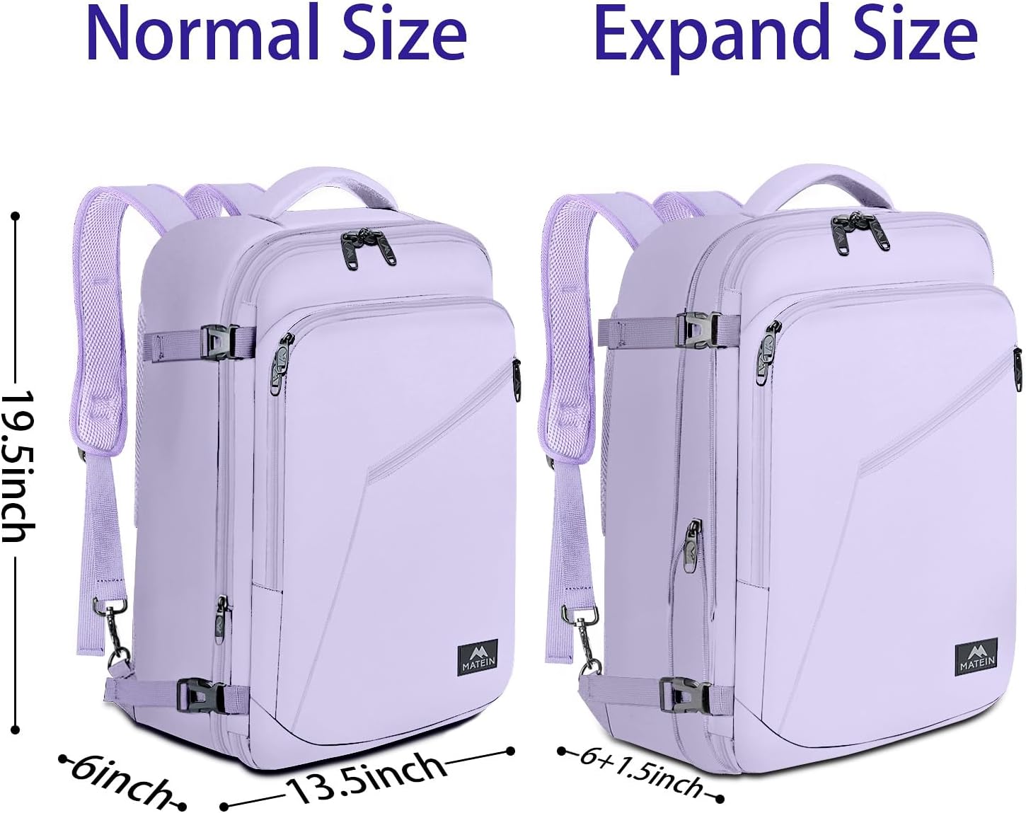 MATEIN Carry on Backpack for Women, 40L Heavy Duty Travel Backpack Airplane Approved, Expandable Simple Fashion Backpack for Women, Frequent Traveler Gifts, Light Purple