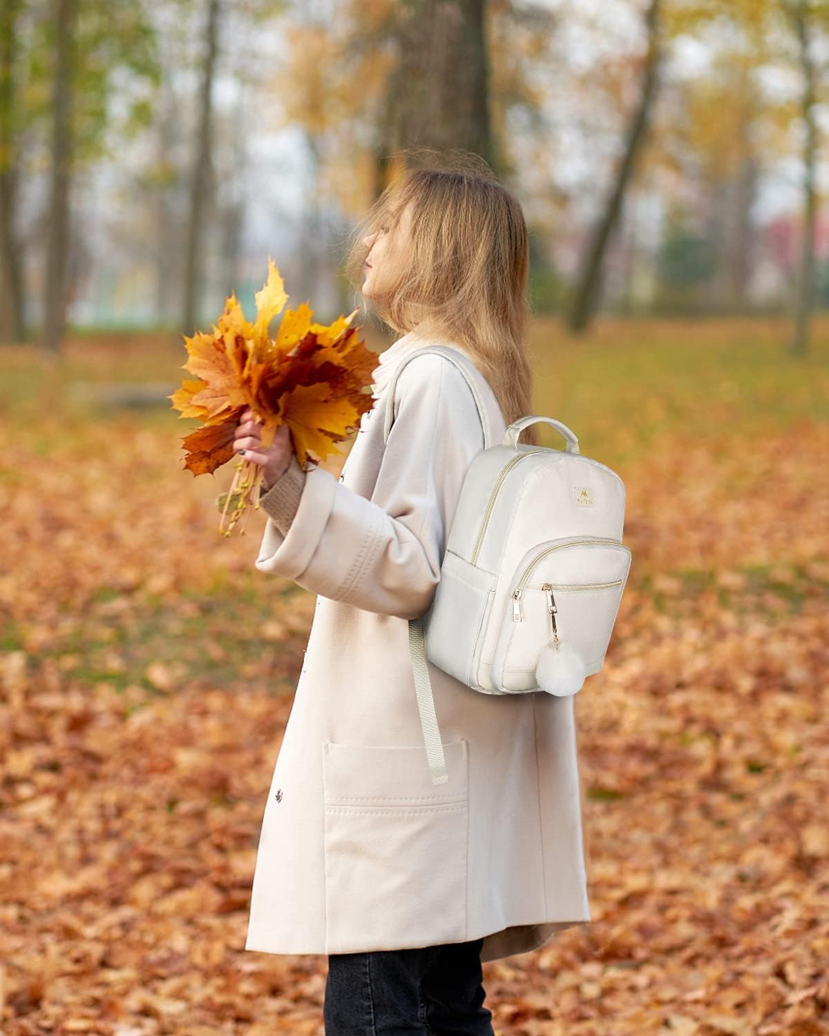 CUTE & FASHION BACKPACK: MATEIN school backpack for girls is designed with stylish quilted pattern, with lovely pompom ball and exquisite gold-plated zippers, the beige color adds ultra-chic polish to the look of this teen girls backpack, make it perfect for middle school girls. As a Cute School Backpack, it provides an external USB charging interface (need to prepare a mobile power supply and a charging cable for connecting to a mobile phone), allowing you to free your hands during the journey.