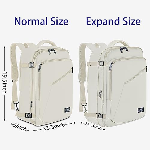 EXPANDABLE & LARGE CAPACITY: This extra large travel backpack with expandable feature offers you more packing capacity. Unzipping to get 40L storage then can easily hold packing cubes, make-up bag, outfits, camera bag and gear, etc. It fits overhead and under seat while on state of standard carry on size, is ideal for men, women, weekend traveler, or occasional vacationer. This versatile luggage backpack also meets airline carry-on requirements, for airlines such as Easy Jet, Spirit, Jet Blue