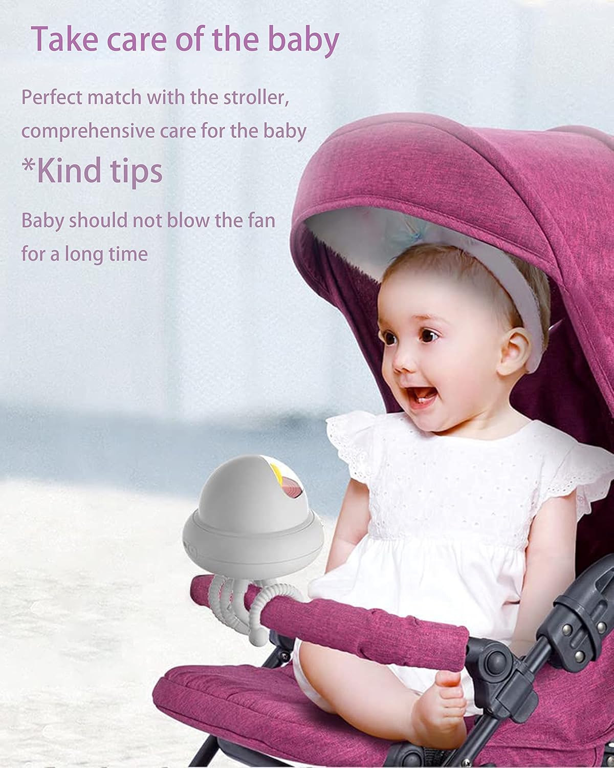 This is a very cost-effective stroller fan. The special design does not worry about pinching the baby’s hand, and the windshield can also be adjusted. You can hang it on a shelf when you are at home, the wind is loud and the sound is low, and it will not affect your rest. You can carry it in your hand when you go out, or hang it in your car, which is very convenient.