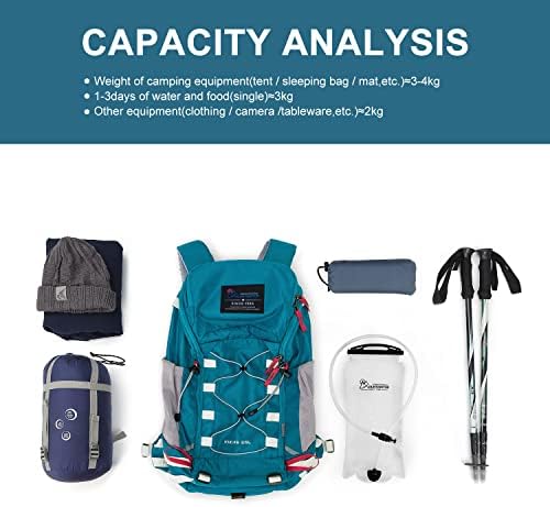🏃【Large Capacity】The dimensions of hiking daypack is 11.8’L x 7.1’W x 21.7’H with a capacity of 35 liters, which is conforms to EU maximum Carry-On luggage size. There is a internal compartment for a hydration bladder and tube, big enough for a 3 liters water bladder.