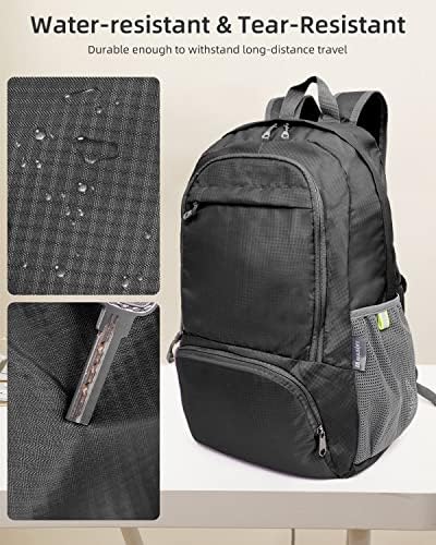 【Magic size, Compact Design】 Our foldable backpack for travel has a size of 18.3x12x7.08 inches/46.5×30.5×18 cm when opened, and a folded size of 7.08 x 9.44 inches/22 x 16 cm. Even when fully packed in all compartments, it complies with flight regulations and can be carried on as a personal item, accompanying you anywhere.