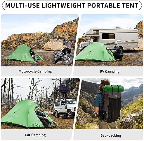 【EASY SETUP FREE STANDING TENT】:With one set of aluminum alloy tent poles, the tent is super easy to assemble, it takes less than two minutes for anyone with no experience.The 2 Y-shape can make it self standing without peg nails. It is the easiest tent you have ever put up. Perfect 2 person tent for Backpacking, cycling, Hiking, Bikepacking, Mountaineering, Fishing or Car Camping. And The Tent comes with a instruction manual.