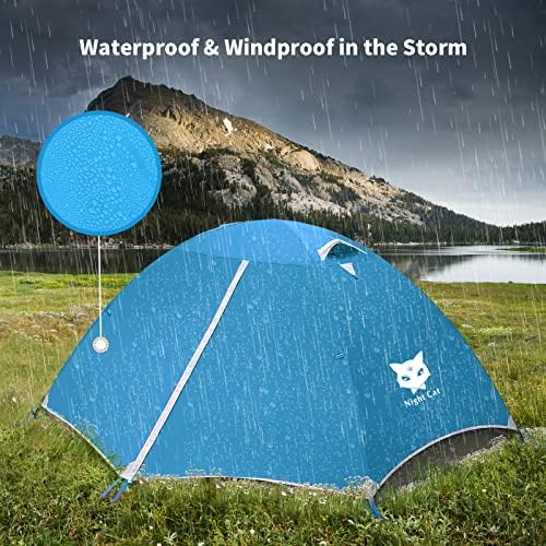 【Aluminium Pole: Lightweight & Strong】 Night Cat 2 persons tent is equipped with premium quality aluminium alloy poles that is quite lightweight, only weighs 2.5KG(5.4lb) in whole set with compact package size 42x15x15cm(16.5×4.7×4.7inches). Strong and sturdy aluminium poles, No worry of broken pole compared to the fiberglass poles