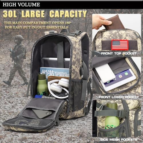 MILITARY MOLLE MODULAR:Molle backpack webbing system on front, you could attach extra outdoor gear, tactical pouches to meet your requirements.Used as 30l military backpack,tactical backpack waterproof,school backpack for boys,army backpack for men and edc backpack for men