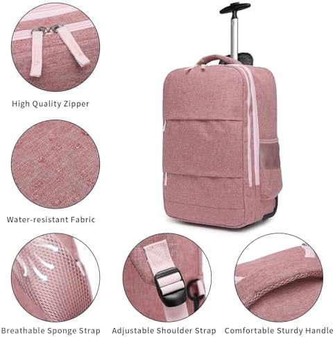MANY OCCASIONS:This backpack with wheels for women can be used as a suitcase backpack,carry on backpack with wheels,work backpack,rolling work bag,rolling laptop backpack,carry on backpack flight approved,weekender backpack,roller bag,backpack on wheels for women,overnight bag with wheels.