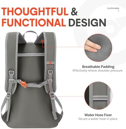 【 Packable & Lightweight】This hiking backpack weighs less than 2 pounds and can easily fold into its own pocket for storage, that only measures 8x9x5 inches. When unfolded, the backpack boasts a large 40-liter capacity, perfect for carrying all of your travel essentials. It can even be used as a carry-on backpack to avoid excess baggage charges. Whenever the backpack is not in use, it can easily be stored in any location by folding into its zipped inner pocket.